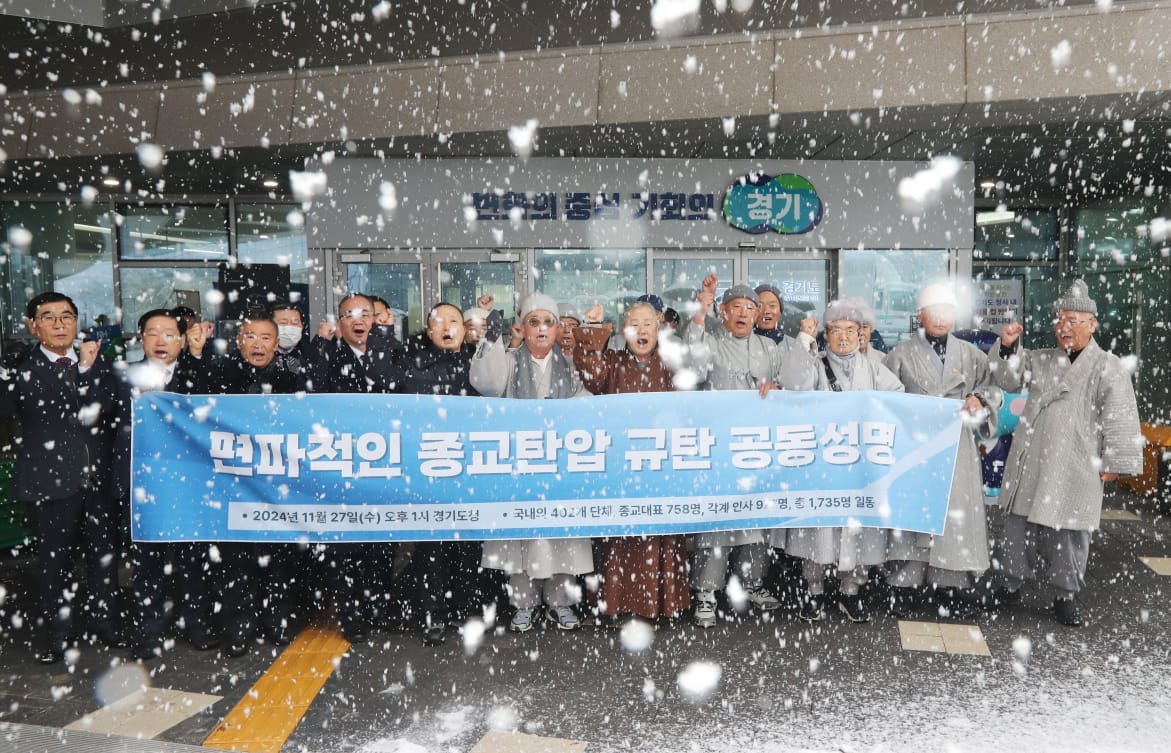 Since November 15, religious leaders and members of the Shincheonji Church of Jesus have held rallies outside the Gyeonggi Provincial Office and Gyeonggi Tourism Organisation, condemning the biased cancellation and urging the government to address the issue and take measures to prevent recurrence.